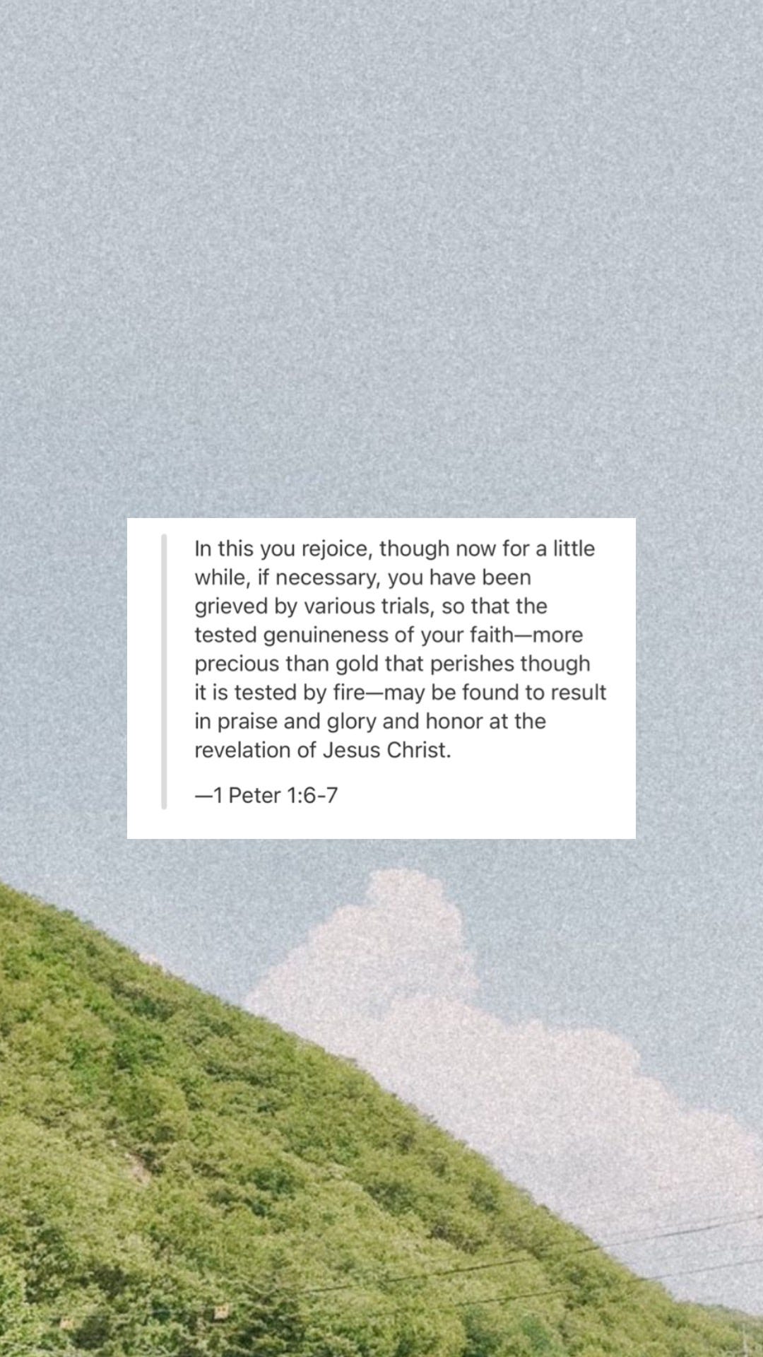 In this you rejoice, though now for a little while, if necessary, you have been grieved by various trials, so that the tested genuineness of your faith—more precious than gold that perishes though it is tested by fire—may be found to result in praise and glory and honor at the revelation of Jesus Christ.